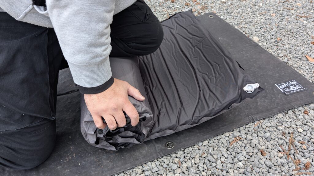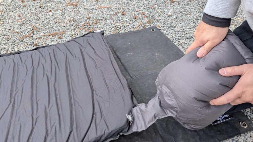 特にダブルサイズのような巨大なマットでも、ポンプが中の空気をグングン吸い出してくれるため、最後は手で軽く丸めるだけで驚くほど簡単に片付けが終わりました。