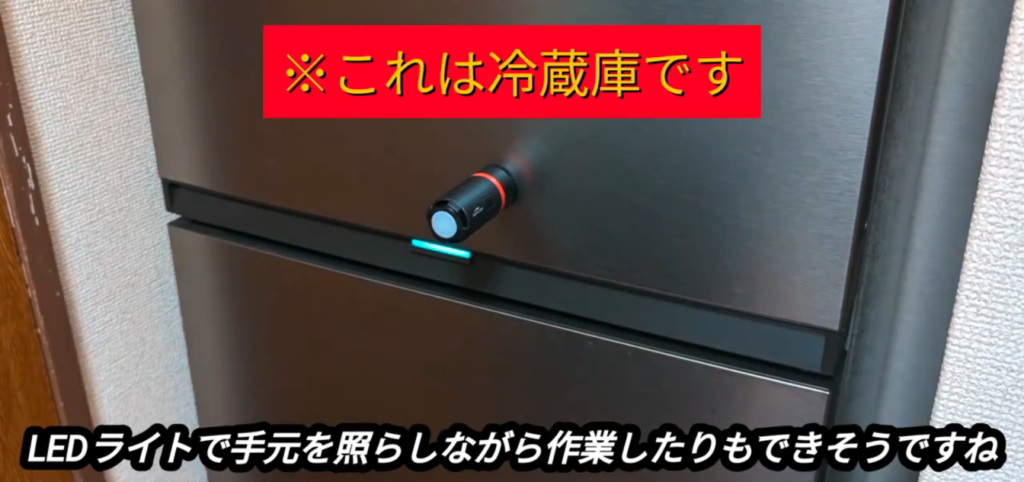 さらに、反対側にはLEDライトとマグネットが仕込まれています。