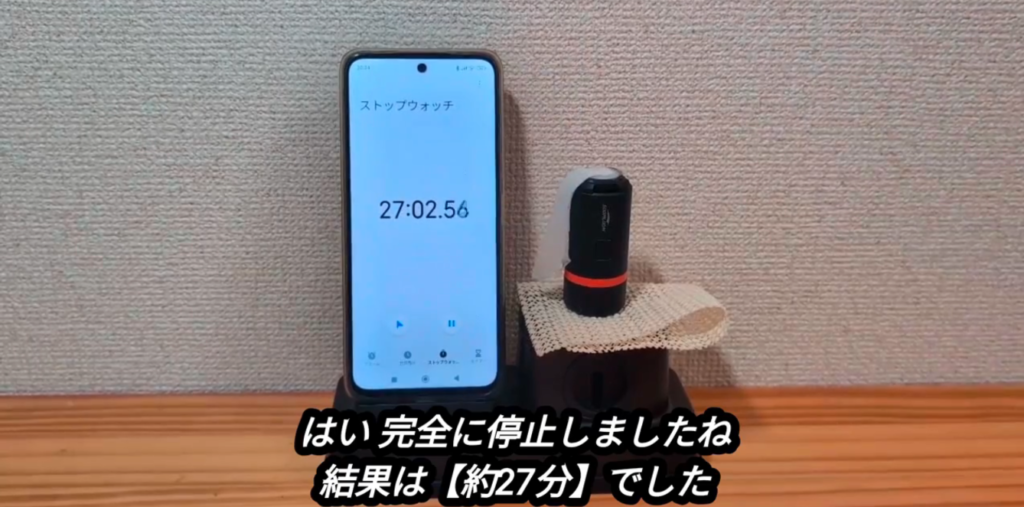 満充電からの連続稼働時間を測ったところ、公式スペックの「25分」をしっかりとクリアする結果が出ました!