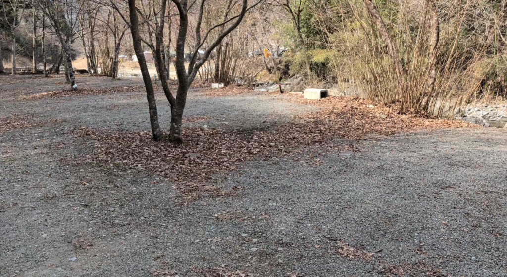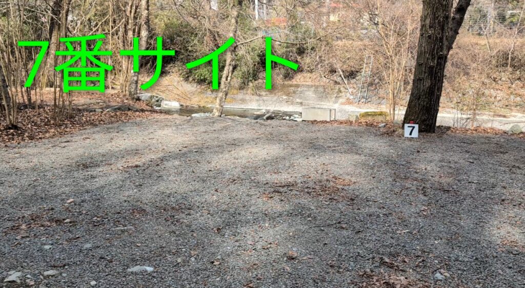木と7番サイトの間に車を停めると、意外と広く使えるかもしれません。