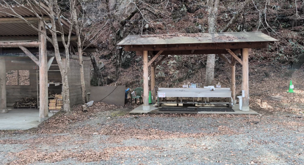 すぐ後ろが薪売り場と炊事場です。