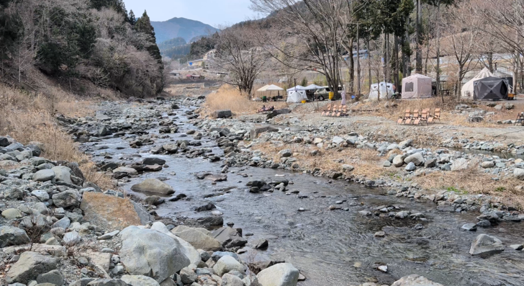 川のせせらぎを聞きながら癒やしのキャンプができる最高の環境です。