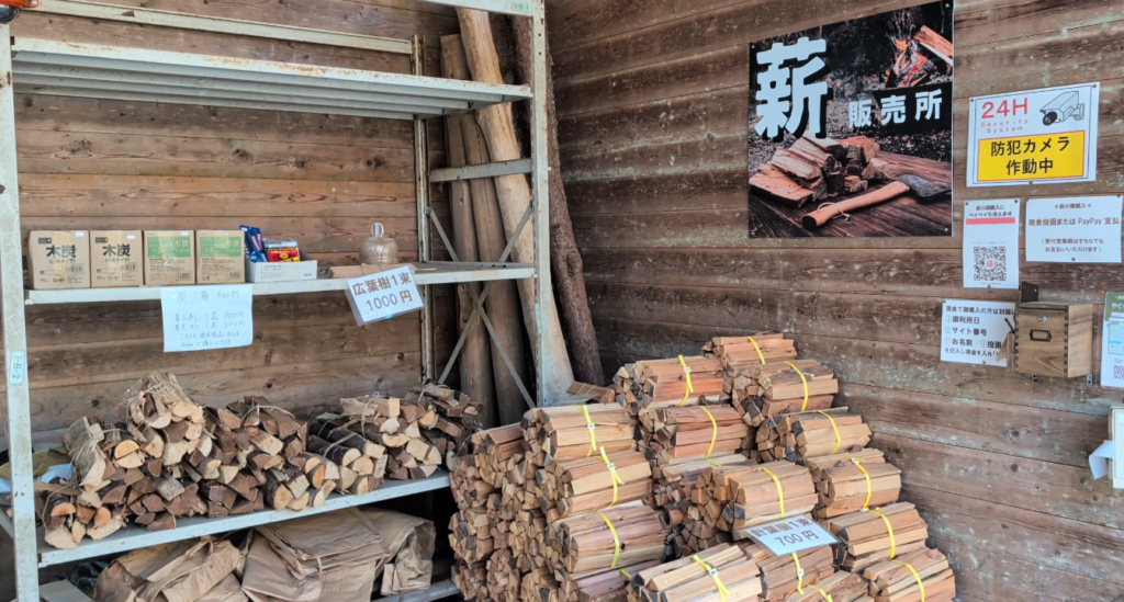 針葉樹700円、広葉樹1000円、炭800円と良心的な価格で、PayPayも使えます。