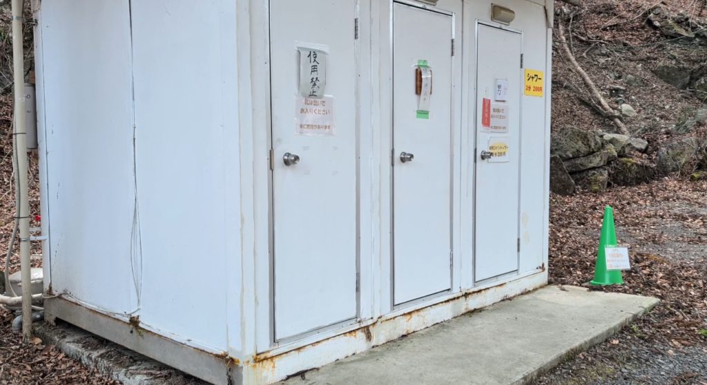 すぐ隣のシャワー棟は3分200円で利用可能(改装中の場合あり)。